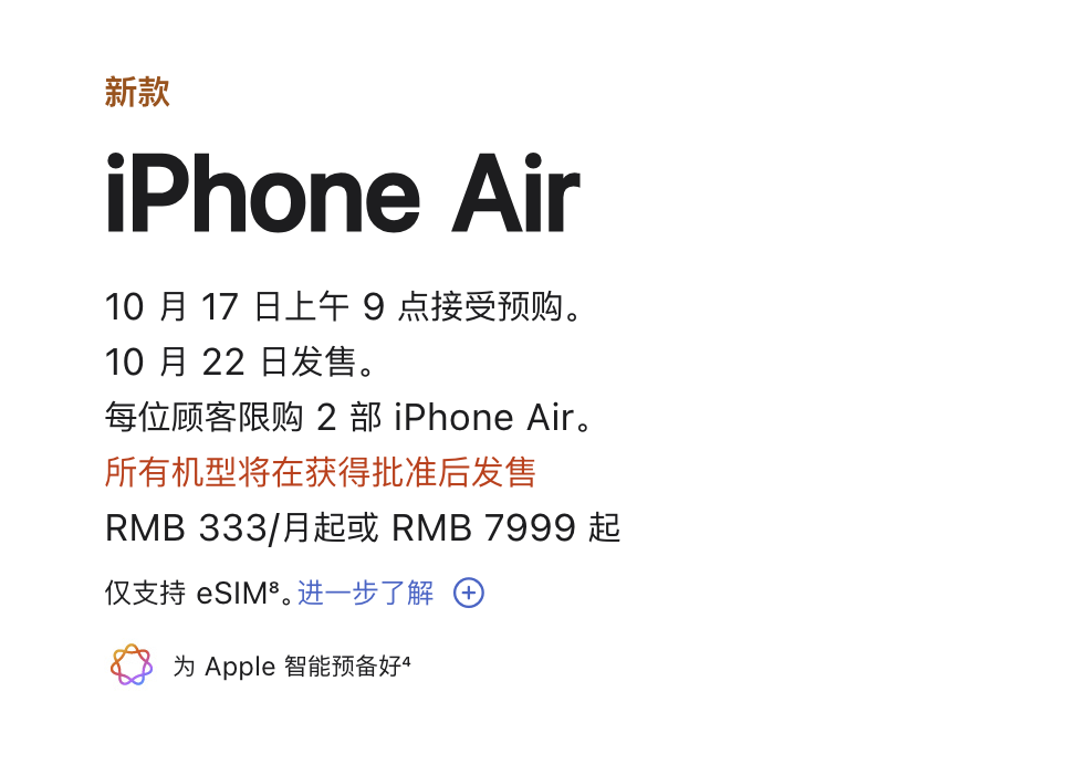Apple CEO Tim Cook 本周一 (10 月 13日)突然現身上海,Apple 中國也宣布 iPhone Air 將於本周五開始接受中國預約,及在 10 月 22 日正式及售。而三大電訊商包括中國聯通、中國移動及中國電信,也於 10 月 13 日正式開啟內地 eSIM 商用服務。其中中國移動在啟動預約的 4 個小時內就吸引逾 15 萬人排隊。